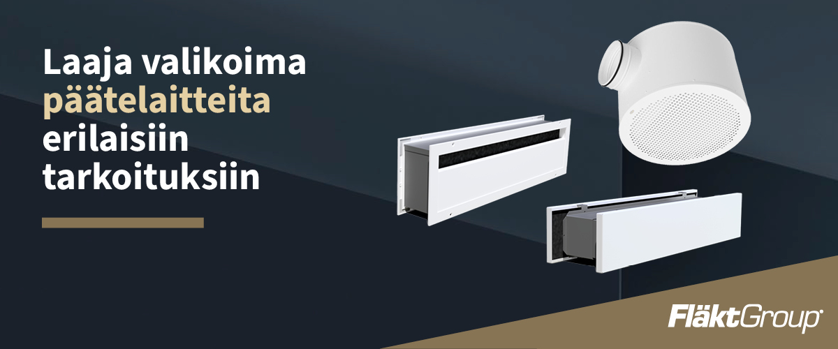 Olipa kyse toimistosta, koulusta, liiketilasta tai julkisesta rakennuksesta, löydät laajasta valikoimastamme oikean päätelaitteen jokaiseen käyttötarkoitukseen. Päätelaiteratkaisut on kehitetty tarjoamaan tehokkuutta, energiansäästöä ja hiljaista toimintaa ilmanvaihdon kaikkiin vaiheisiin.
