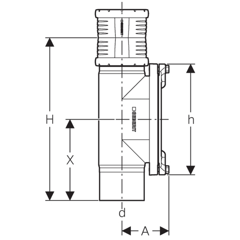 Geberit Silent-Pro -puhdistusyhde 90° soikealla huoltoaukolla: d = 125 mm.
