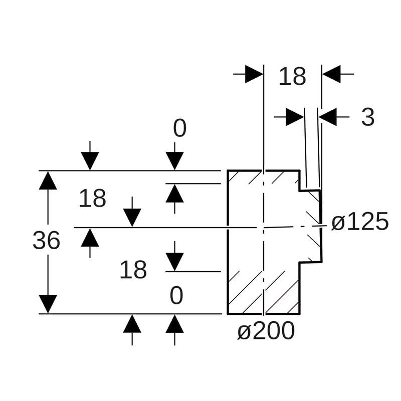 Geberit PE -haarayhde 88,5°: d = 200 mm, d1 = 125 mm.