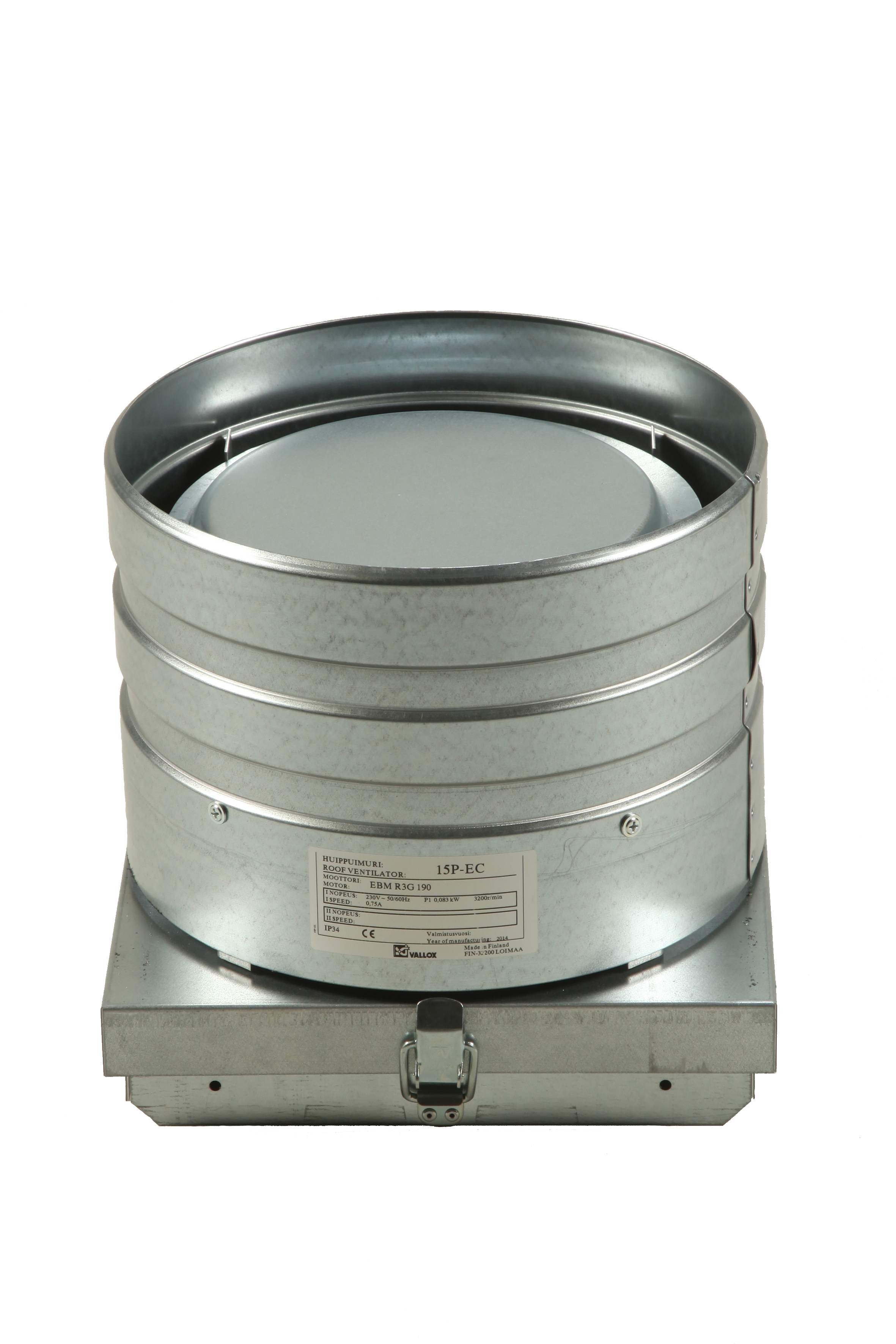 - Tuotekuvaus EC-mallissa ei ole huoltokytkintä eikä portaatonta potentiometriä. Lisävarusteena on saatavilla tehdasvalmisteinen kattoläpivienti, alipainepelli ja asennuskehys. Kattoläpivienti on ääni- ja paloeristetty (EI30). Vallox 15P-EC -huippuimurit täyttävät ErP-direktiivin vaatimukset, niissä on hyvä SFP-luku, moottoriin integroitu ylilämpösuoja sekä portaaton ohjaus.