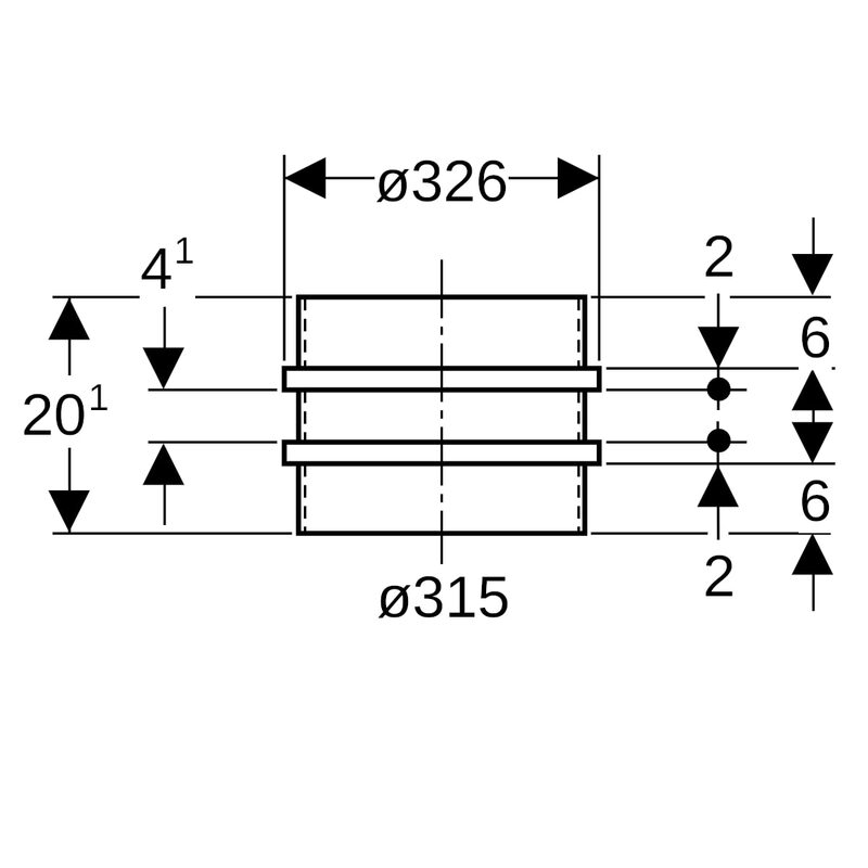 Geberit PE -kaksoiskiintopisteosa: d = 315 mm.