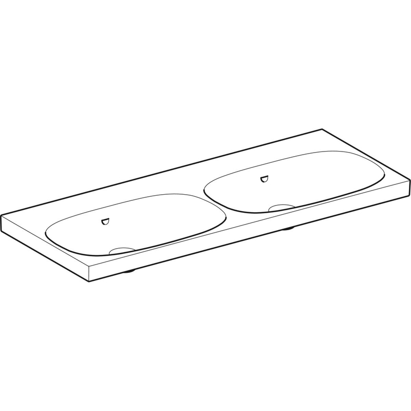 Geberit Acanto -kaksoispesuallas: B = 120 cm, T = 48.2 cm, hanareikä = ei ole, ylivuoto = näkyvä, valkoinen.