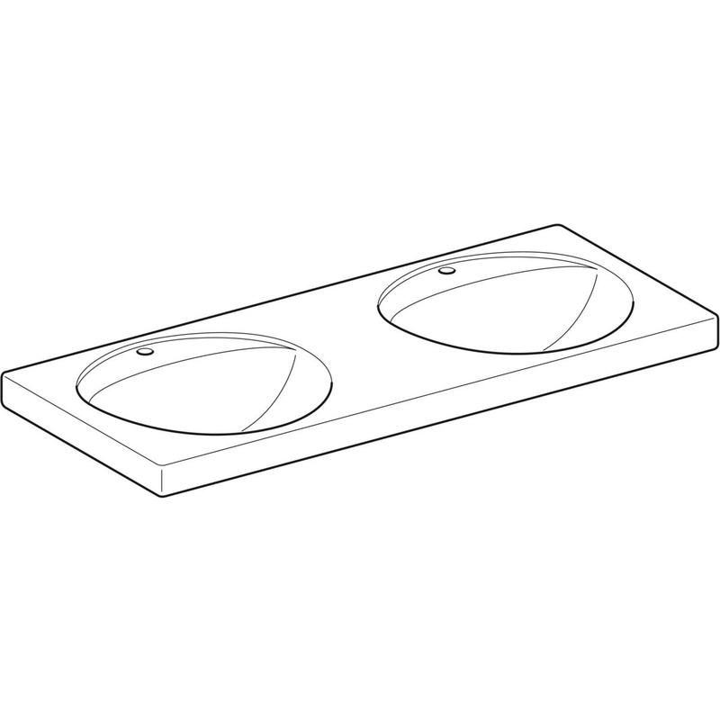 Geberit Preciosa -kaksoispesuallas: B = 130 cm, T = 55 cm, hanareikä = keskellä, ylivuoto = ei ole, valkoinen.