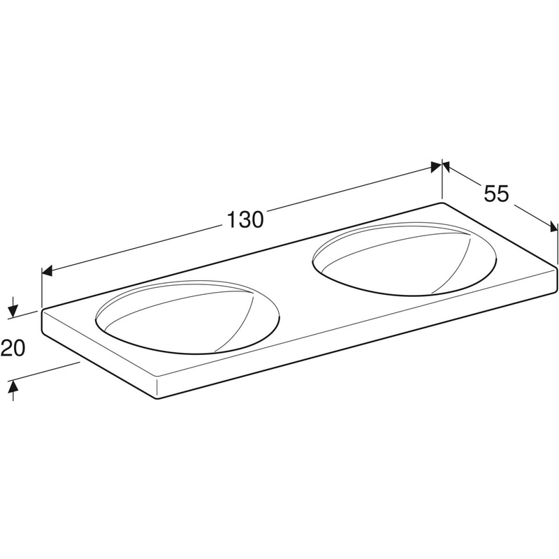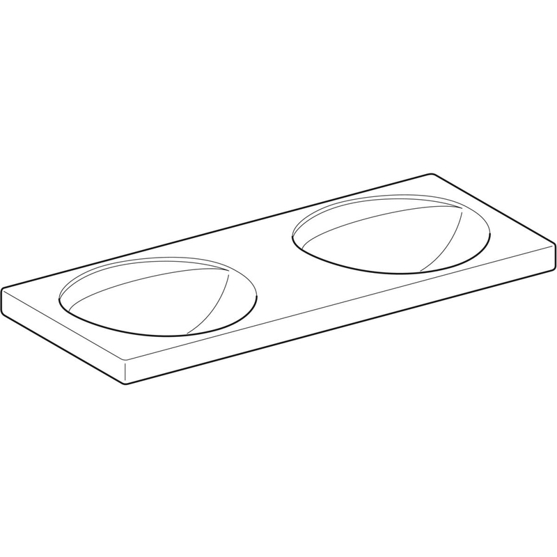 Geberit Preciosa -kaksoispesuallas: B = 130 cm, T = 55 cm, hanareikä = ei ole, ylivuoto = ei ole, valkoinen/ KeraTect.