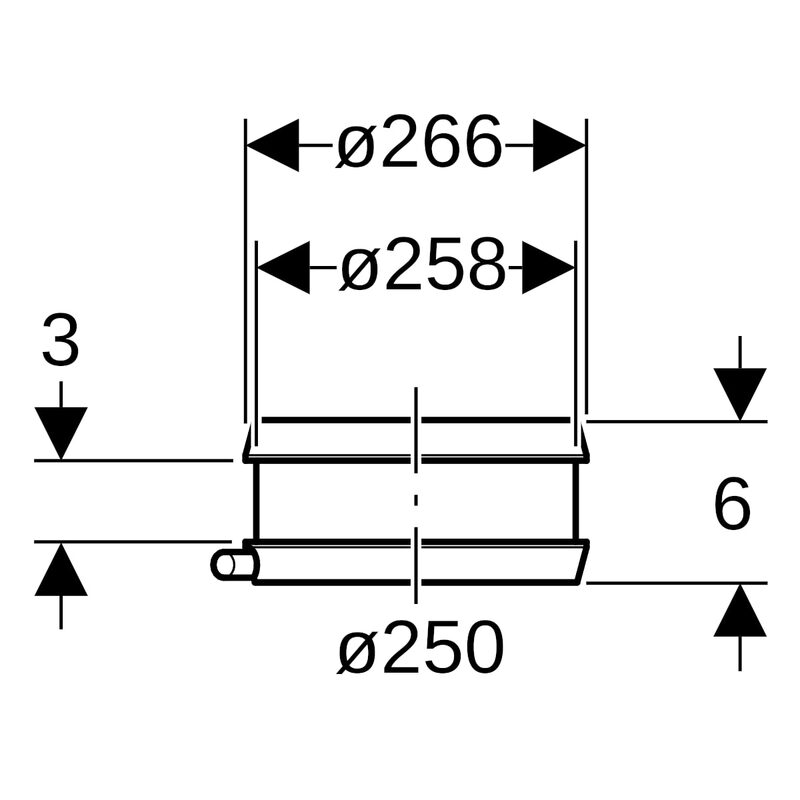 Geberit-kiintopisteen sähköhitsauspanta: d = 250 mm, d1 = 258 mm.