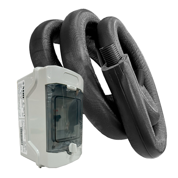 Poistovesiputki KVR 15 -lisävarusteella viedään hallitusti pois ulkoyksiköstä muodostuvaa sulatusvettä. Mallille NIBE S2060. Toimituksessa on myös sulanapitokaapeli. Pituus 1 m. Lämmityskaapeli kytkeytyy automaattisesti päälle, kun ulkolämpötila laskee alle 1,5 °C. Kun ulkolämpötila nousee taas yli 2 °C:n, lämmityskaapeli kytkeytyy pois päältä.