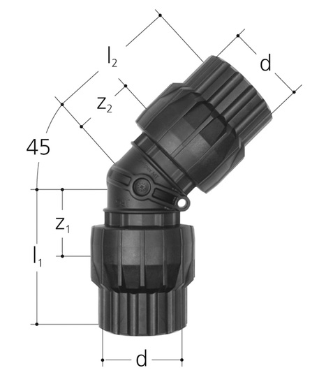 Kulmaliitin 45° JRG Sanipex D63 PN10