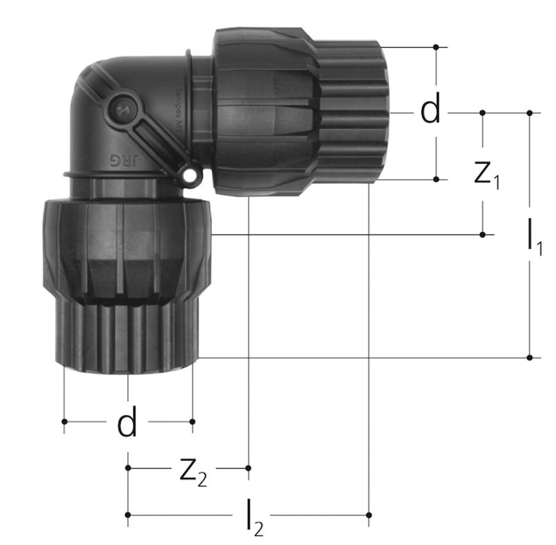 Kulmaliitin 90° JRG Sanipex D63 PN10