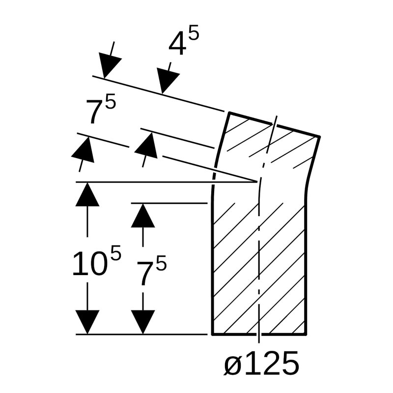 Geberit PE -kulmayhde pitkä malli: 15°, d = 125 mm.