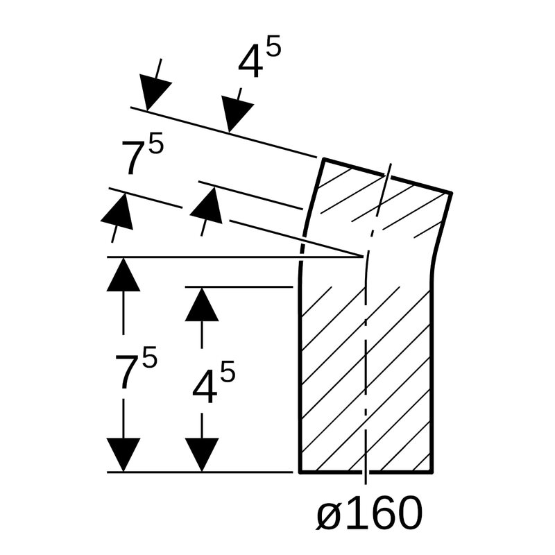 Geberit PE -kulmayhde pitkä malli: 15°, d = 160 mm.
