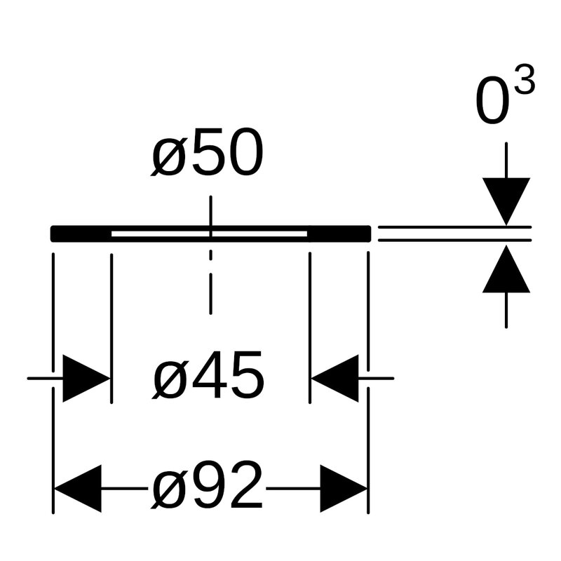 Geberit PE -laippatiiviste: d = 50 mm, di = 45 mm.