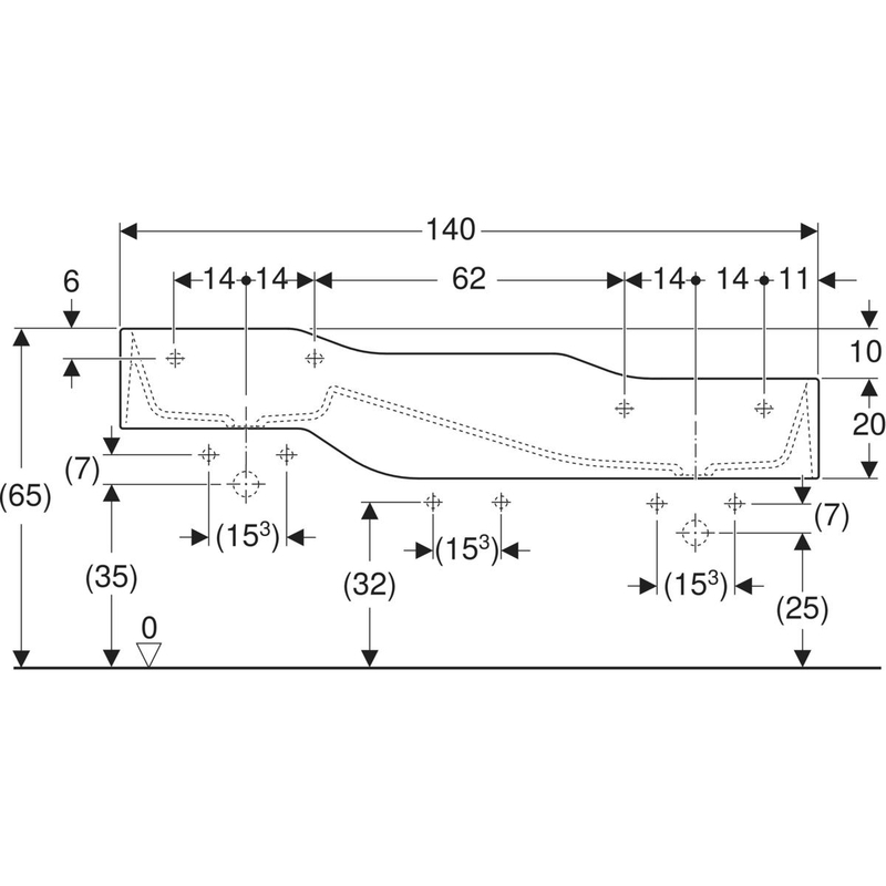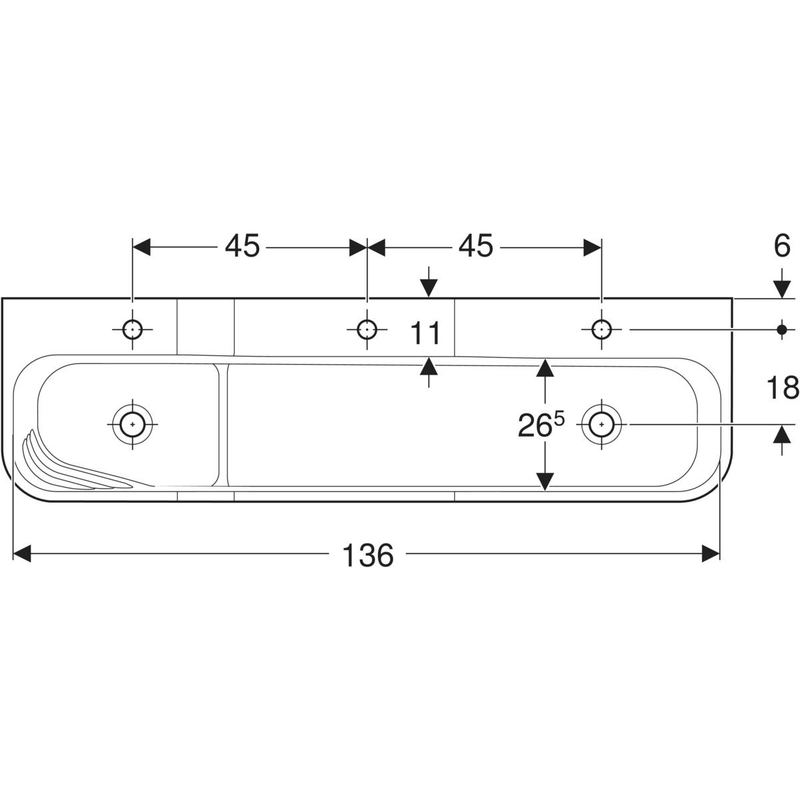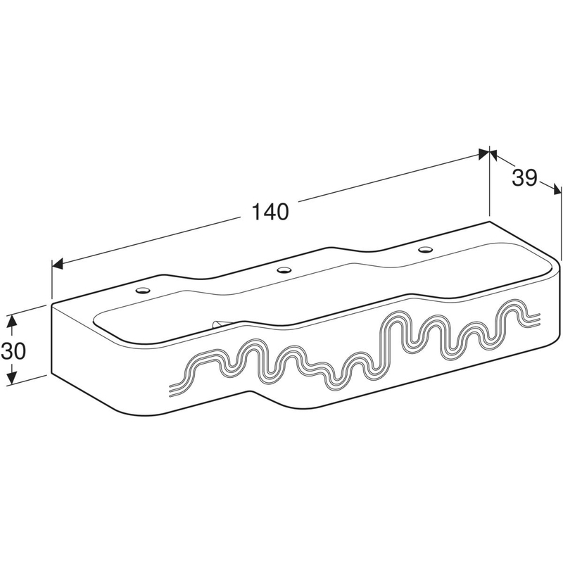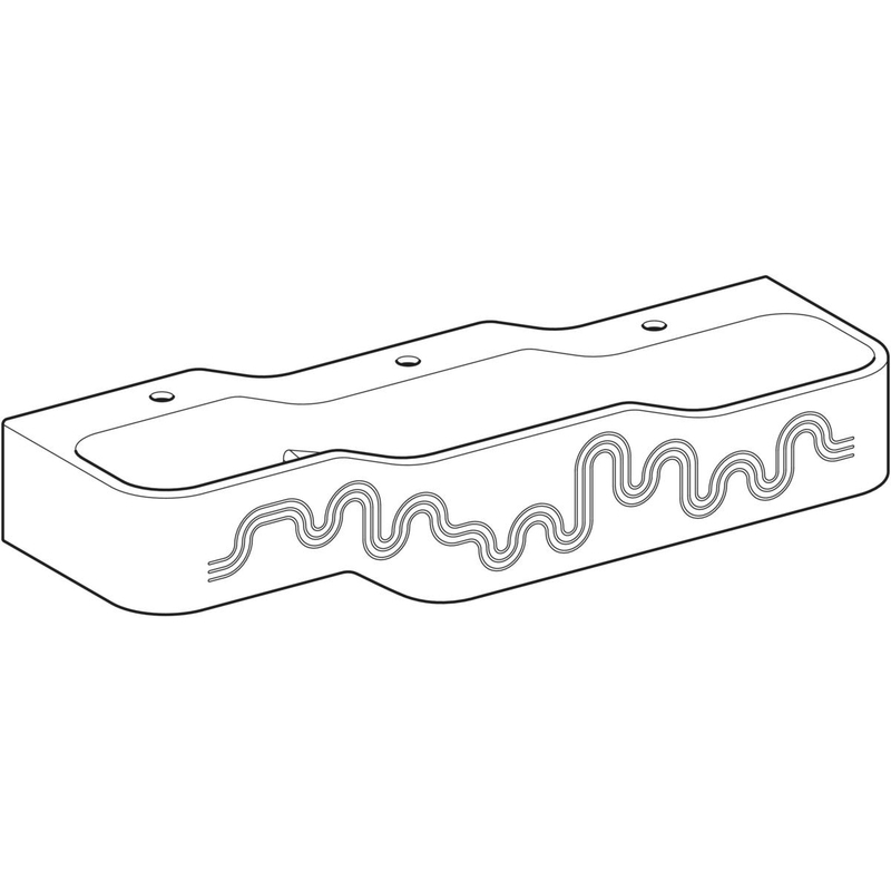 Geberit Bambini -leikki- ja pesuympäristö, kolmella pesupaikalla, matalampi allas oikealla: B = 140 cm, hanareikä = keskellä, vasemmalla ja oikealla, metsänvihreä.