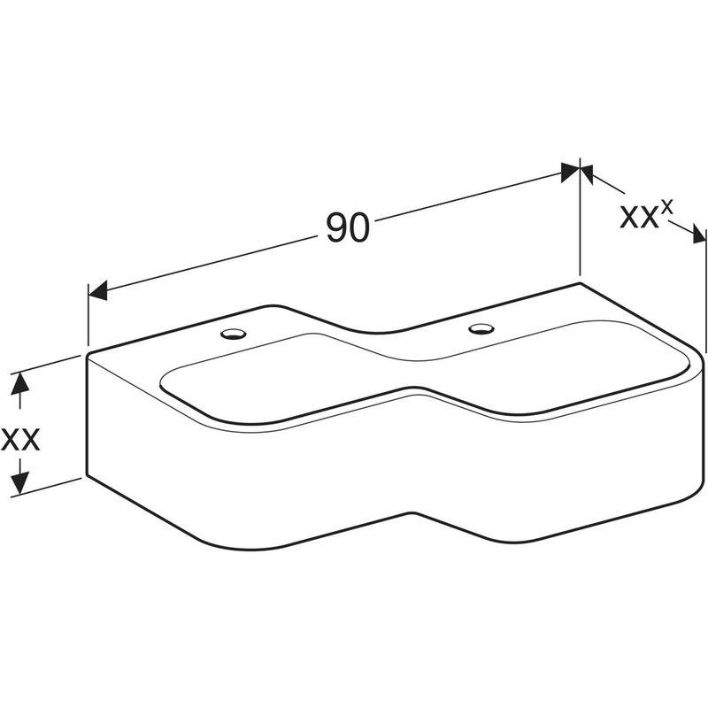 Geberit Bambini -leikki- ja pesuympäristö, kahdella pesupaikalla, matalampi allas oikealla: B = 90 cm, hanareikä = vasen ja oikea, valkoinen (Alpine).