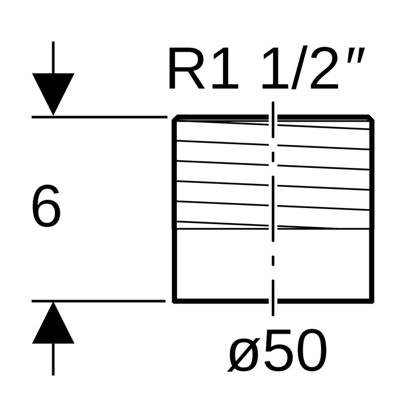 Geberit PE -liitin ulkokierteellä: d = 50 mm, R = 1 1/2".