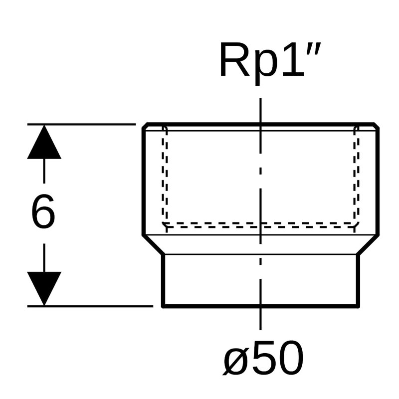 Geberit PE -liitin sisäkierteellä: d = 50 mm, Rp = 1".