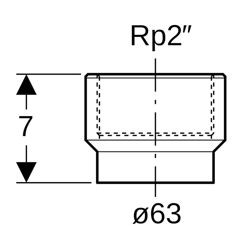 Geberit PE -liitin sisäkierteellä: d = 63 mm, Rp = 2".