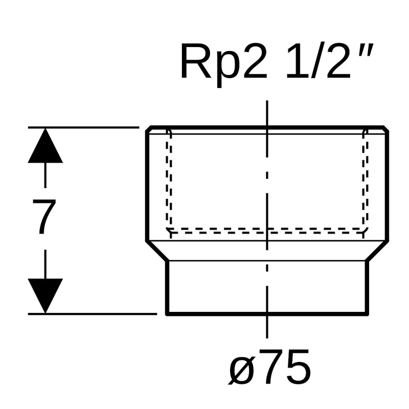 Geberit PE -liitin sisäkierteellä: d = 75 mm, Rp = 2 1/2".
