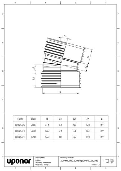 Muhvikulma PP 15° Uponor Ultra Rib 2 DU 450x15