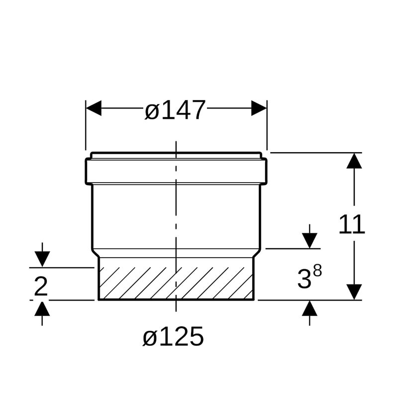 Geberit PE O-rengasmuhvi huulitiivisteellä: d = 125 mm. Kiinteistöviemärijärjestelmiin ja tonttiviemäröintiin.