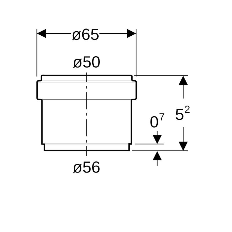 Geberit PE O-rengasmuhvi supistettu, huulitiivisteellä: d = 56 mm. Kiinteistöviemärijärjestelmiin ja tonttiviemäröintiin.