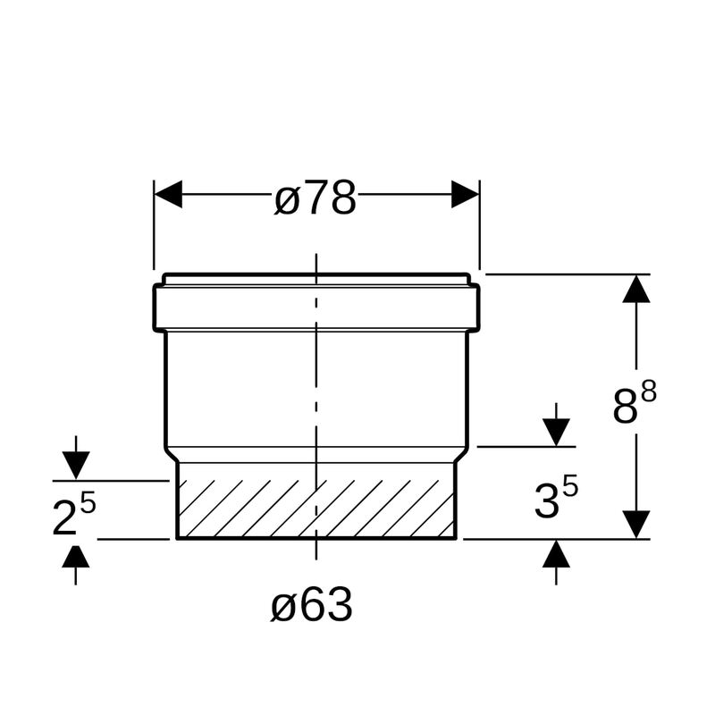 Geberit PE O-rengasmuhvi huulitiivisteellä: d = 63 mm. Kiinteistöviemärijärjestelmiin ja tonttiviemäröintiin.