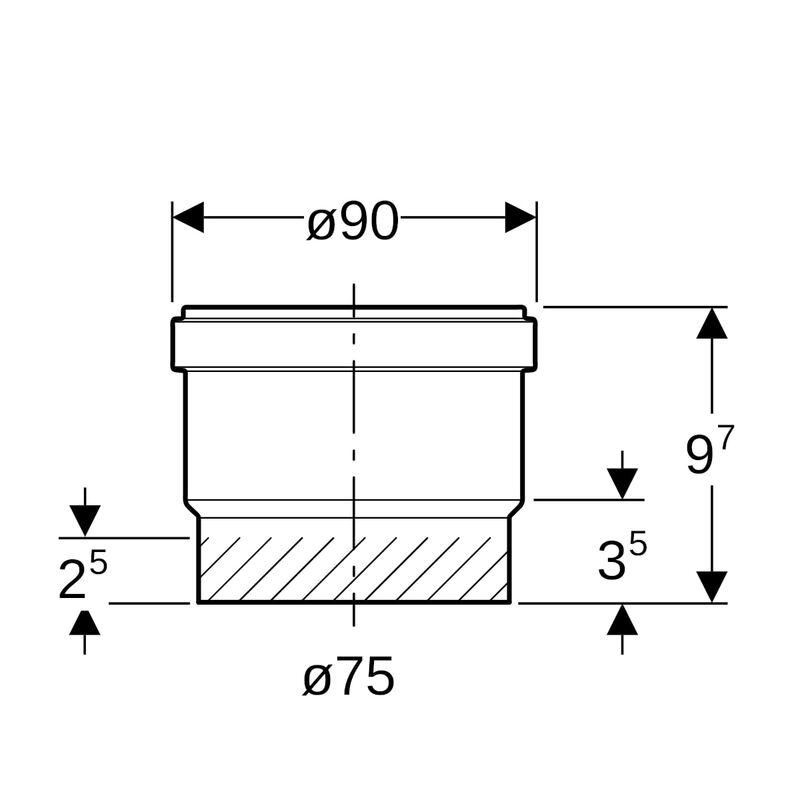 Geberit PE O-rengasmuhvi huulitiivisteellä: d = 75 mm. Kiinteistöviemärijärjestelmiin ja tonttiviemäröintiin.