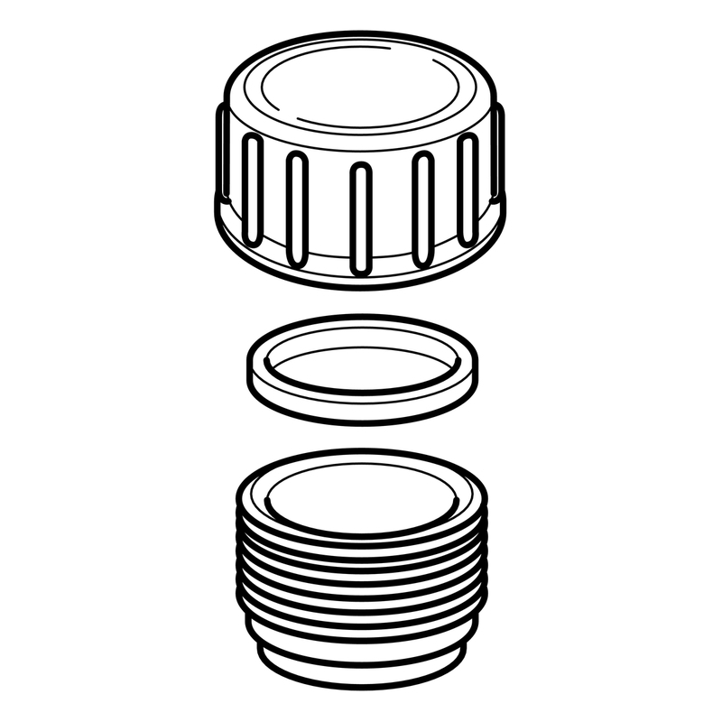 Geberit PE -päätykorkki: d = 40 mm, d = 6.4 cm, H = 6.3 cm.