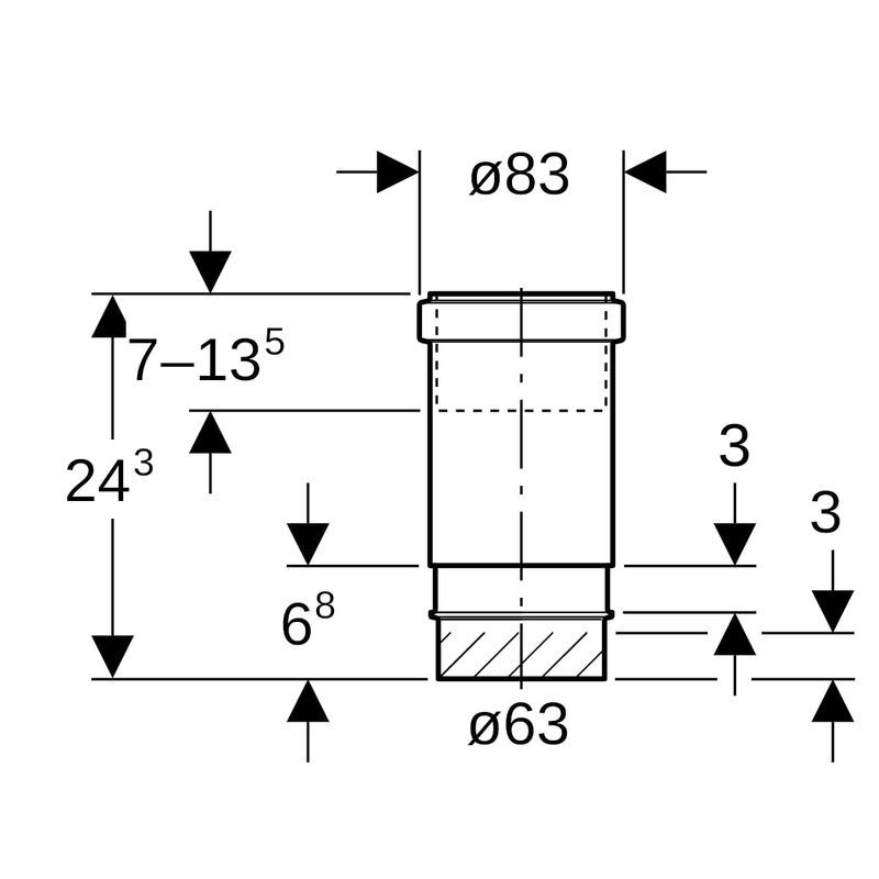 Geberit PE -paisuntamuhvi tuplalaipalla: d = 63 mm.