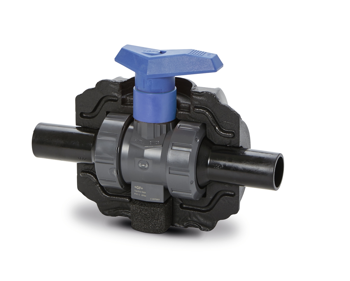 Käsikäyttöinen palloventtiili COOL-FIT 2.0. Pallotiivisteet malli 542-PE d63 (sininen kahva).