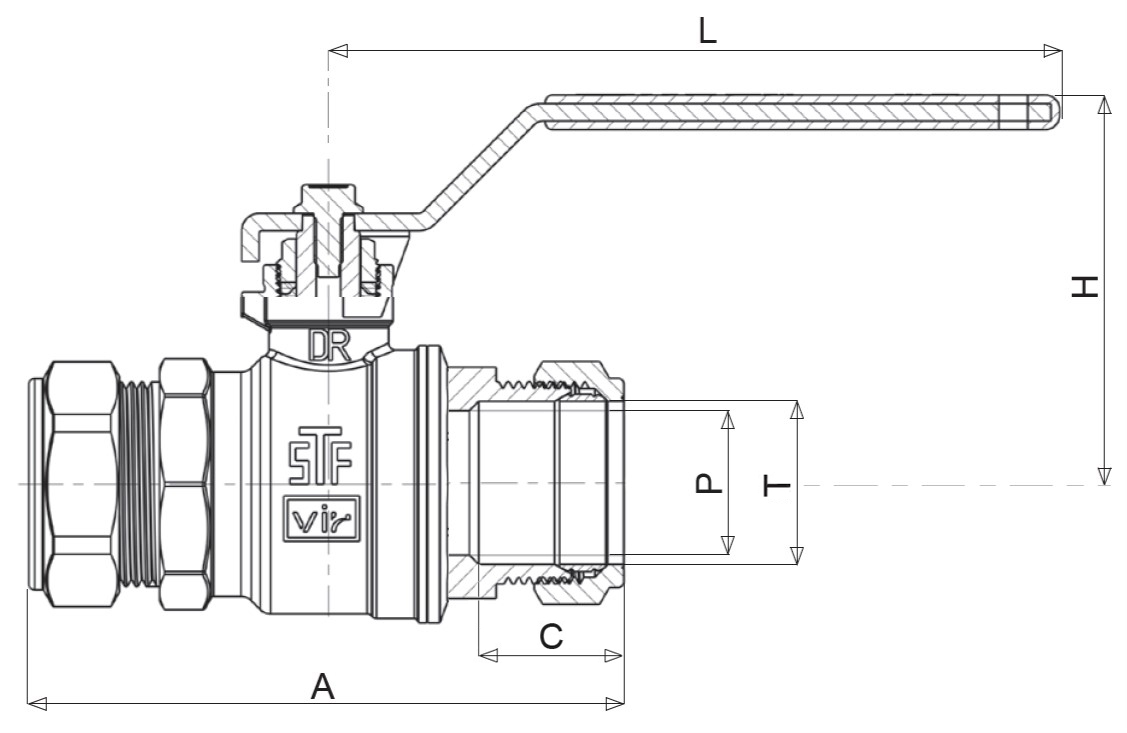 Puserrusliittimin varusteltu täysaukkoinen palloventtiili. Rungon materiaalina on uusi matalalyijymessinki (CW511L). Venttiilin kara on iskunkestävä Grafoil®-tiivisteen ansiosta.