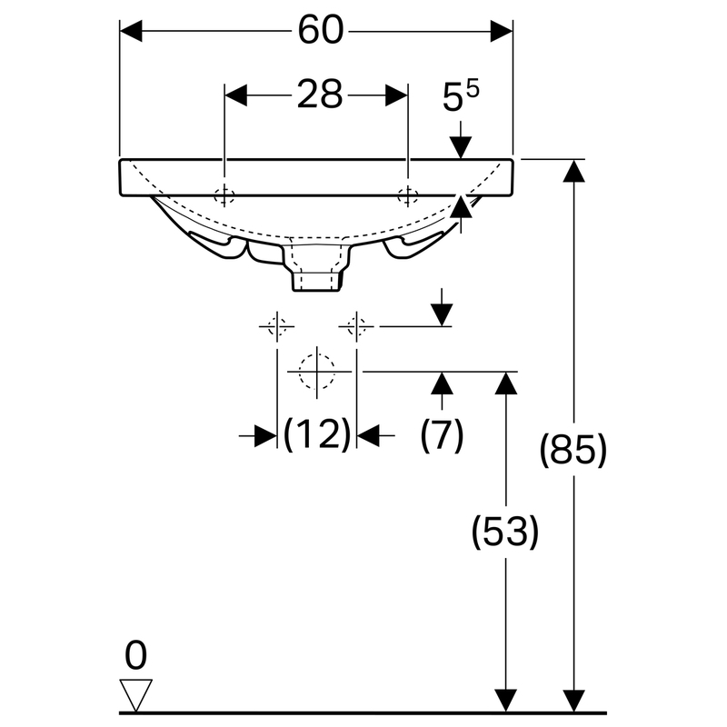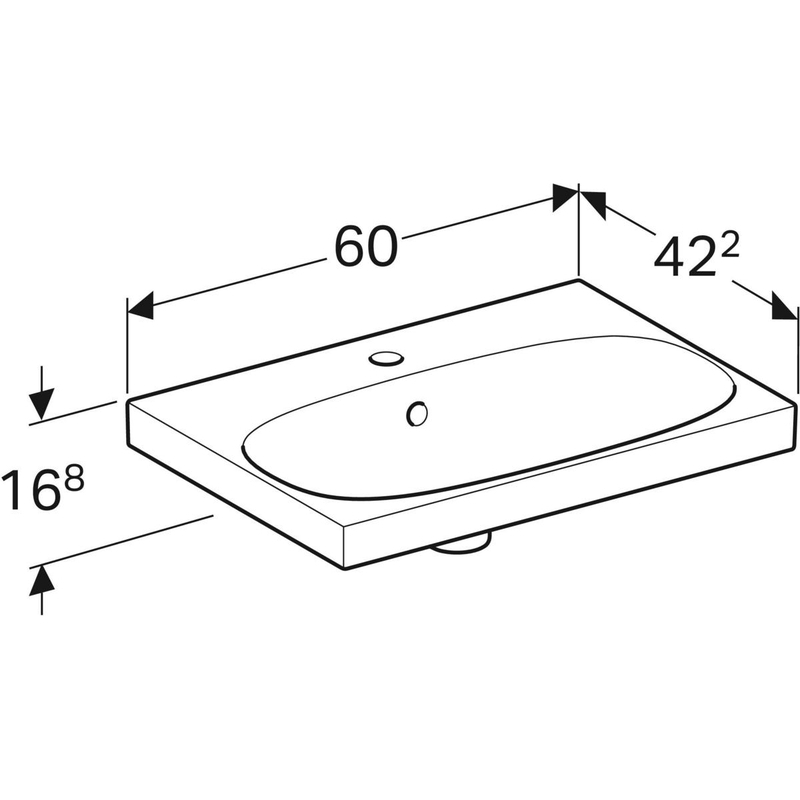 Geberit Acanto -pesuallas Compact: B = 60 cm, T = 42.2 cm, hanareikä = keskellä, ylivuoto = näkyvä, valkoinen/ KeraTect.