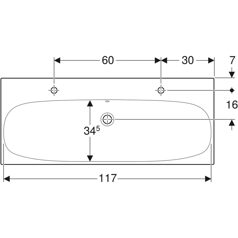 Geberit Acanto -pesuallas: B = 120 cm, T = 48.2 cm, hanareikä = vasen ja oikea, ylivuoto = näkyvä, valkoinen.