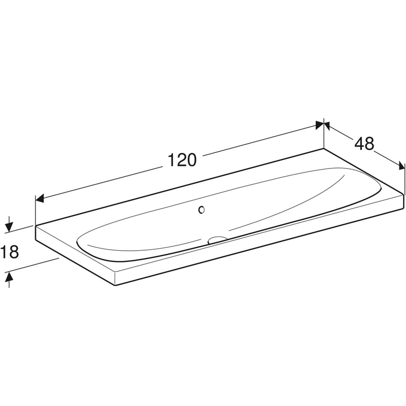 Geberit Acanto -pesuallas: B = 120 cm, T = 48.2 cm, hanareikä = ei ole, ylivuoto = näkyvä, valkoinen.