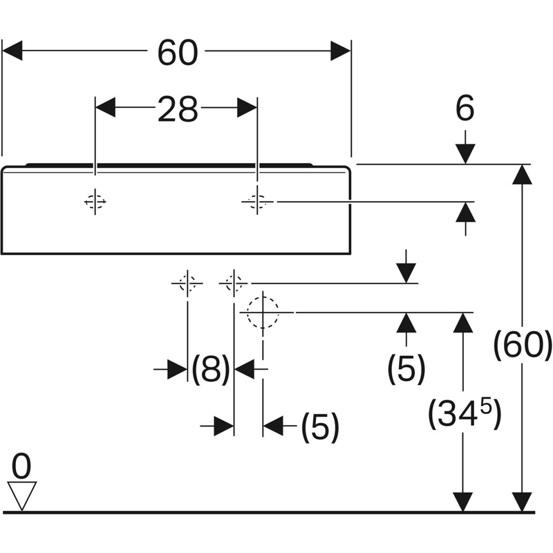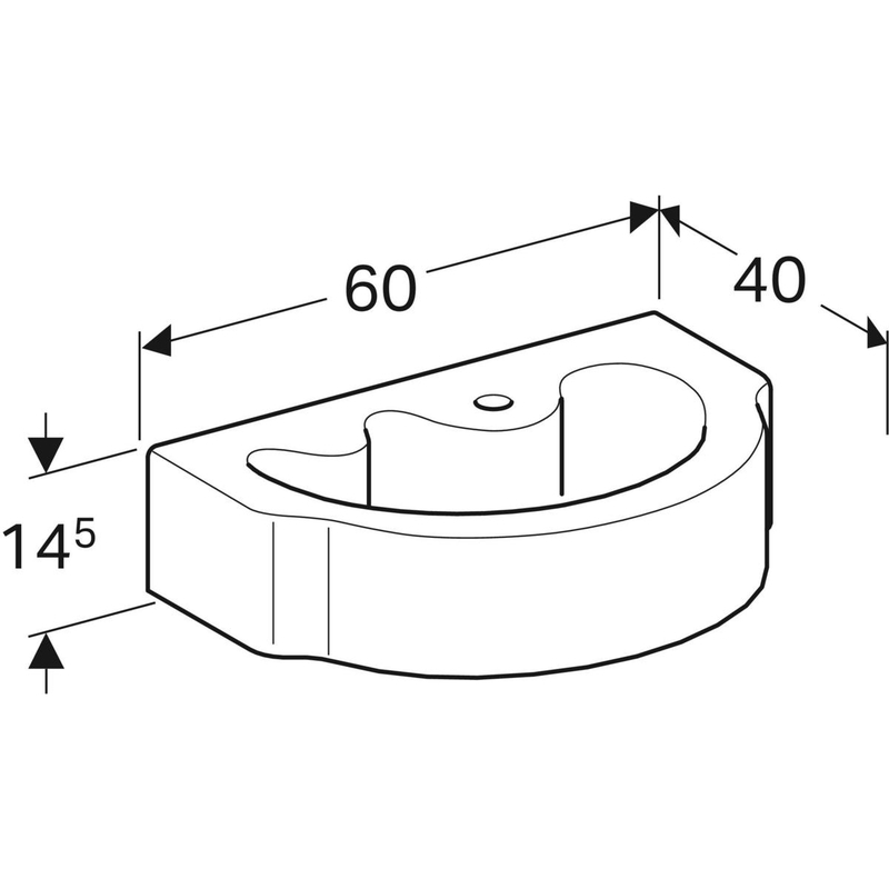 Geberit Bambini -pesuallas lapsille: B = 60 cm, T = 40 cm, hanareikä = keskellä, ylivuoto = ei ole, valkoinen.