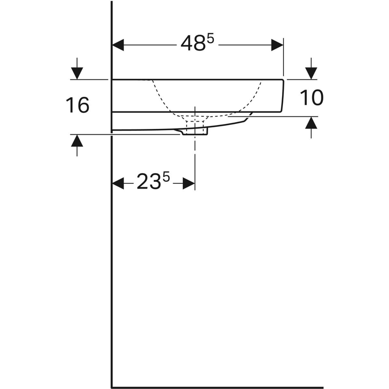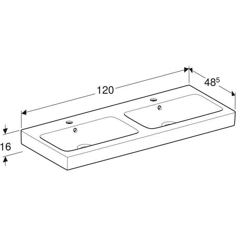 Geberit iCon -kaksoispesuallas: B = 120 cm, T = 48.5 cm, hanareikä = keskellä, ylivuoto = näkyvä, valkoinen/ KeraTect.