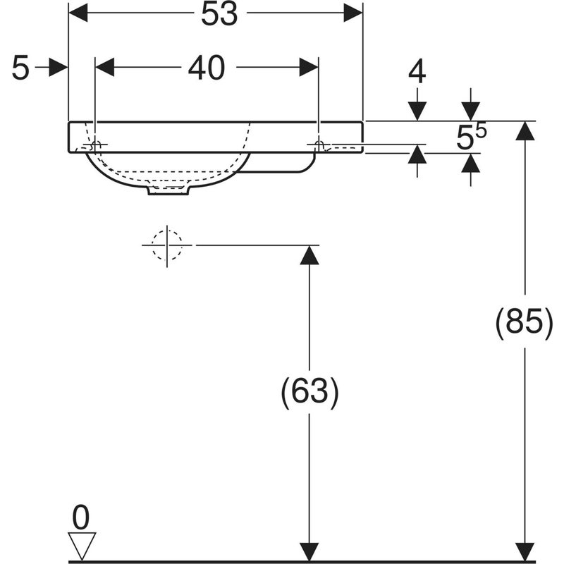 Geberit iCon Light pieni pesuallas, jossa on laskutaso: valkoinen/ KeraTect, B = 53 cm, H = 13 cm, T = 31 cm, hanareikä = ei ole, ylivirtaus = ei ole, laskutaso = oikea.