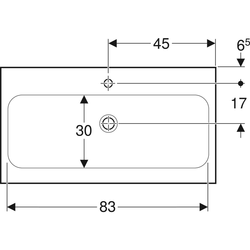 Geberit iCon Light -pesuallas: B = 90 cm, T = 48 cm, hanareikä = keskellä, ylivirtaus = ei ole, valkoinen.