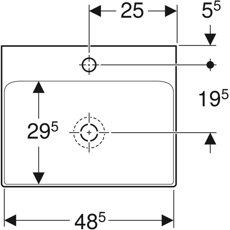 Geberit ONE -pesuallas, pystypoisto: B = 50 cm, T = 41 cm, hanareikä = keskellä, ylivuoto = ei ole, valkoinen/ KeraTect.