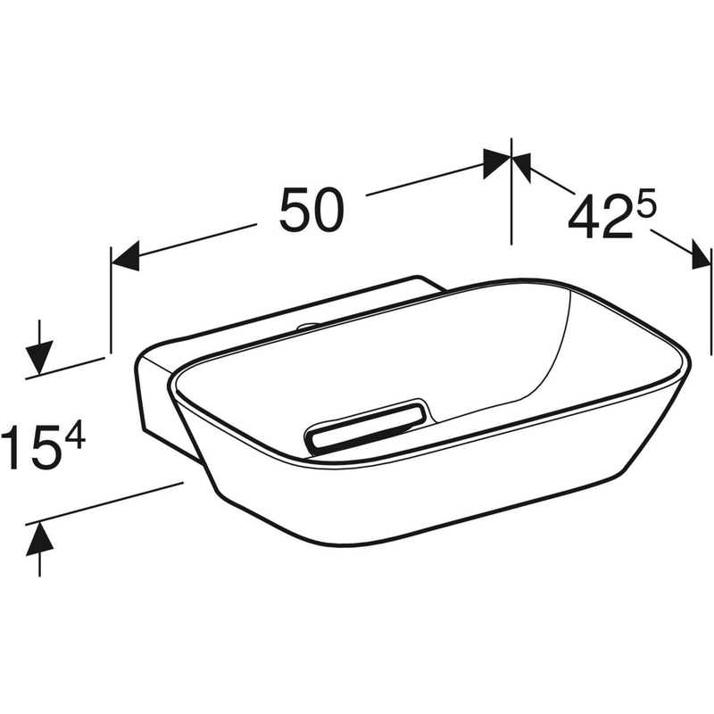 Geberit ONE -tason päälle asennettava pesuallas, vaakapoisto: B = 50 cm, T = 42.5 cm, hanareikä = keskellä, ylivuoto = ei ole, valkoinen matta, kiiltävä valkoinen.
