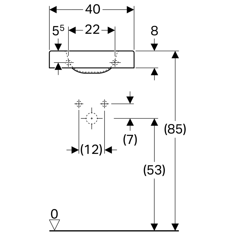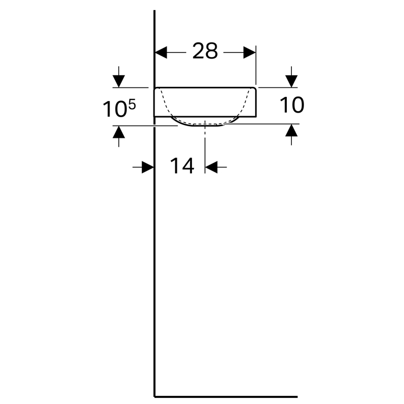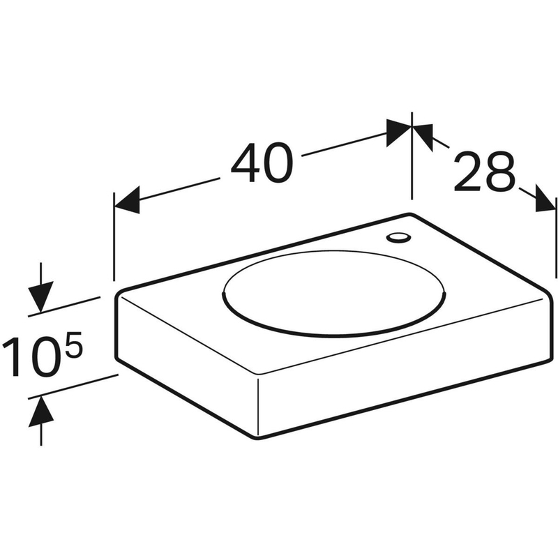 Geberit Preciosa II -pieni pesuallas: valkoinen/ KeraTect, B = 40 cm, H = 10.5 cm, T = 28 cm, hanareikä = oikea, ylivuoto = ei ole.