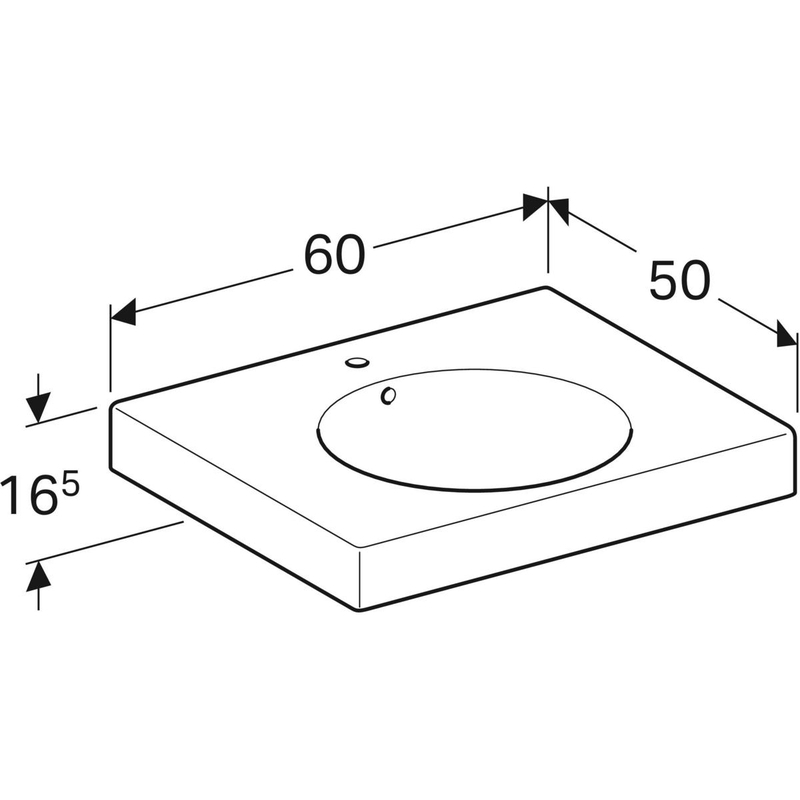 Geberit Preciosa II -pesuallas laskutasolla: B = 60 cm, T = 50 cm, hanareikä = keskellä, ylivuoto = näkyvä, valkoinen/ KeraTect.