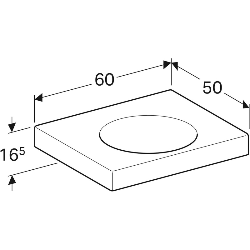 Geberit Preciosa II -pesuallas laskutasolla: B = 60 cm, T = 50 cm, hanareikä = ei ole, ylivuoto = ei ole, valkoinen/ KeraTect.