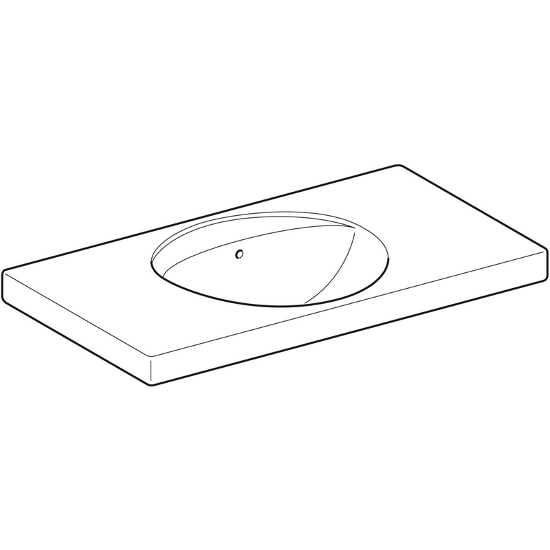 Geberit Preciosa -pesuallas laskutasolla: B = 100 cm, T = 55 cm, hanareikä = ei ole, ylivuoto = näkyvä, valkoinen/ KeraTect.