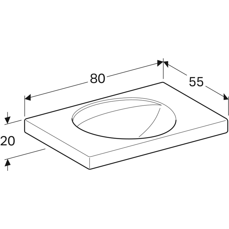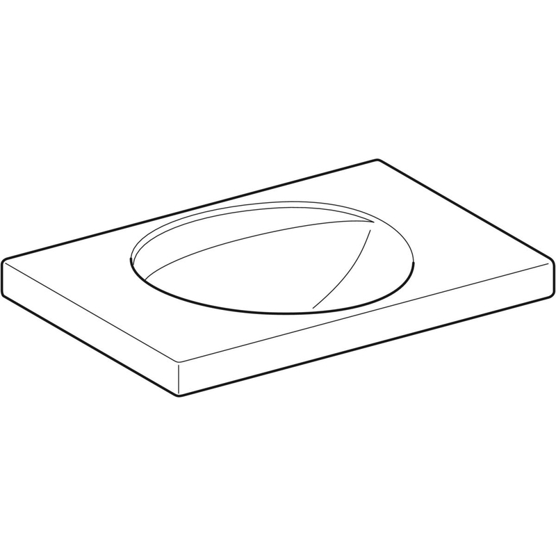 Geberit Preciosa -pesuallas laskutasolla: B = 80 cm, T = 55 cm, hanareikä = ei ole, ylivuoto = ei ole, valkoinen/ KeraTect.