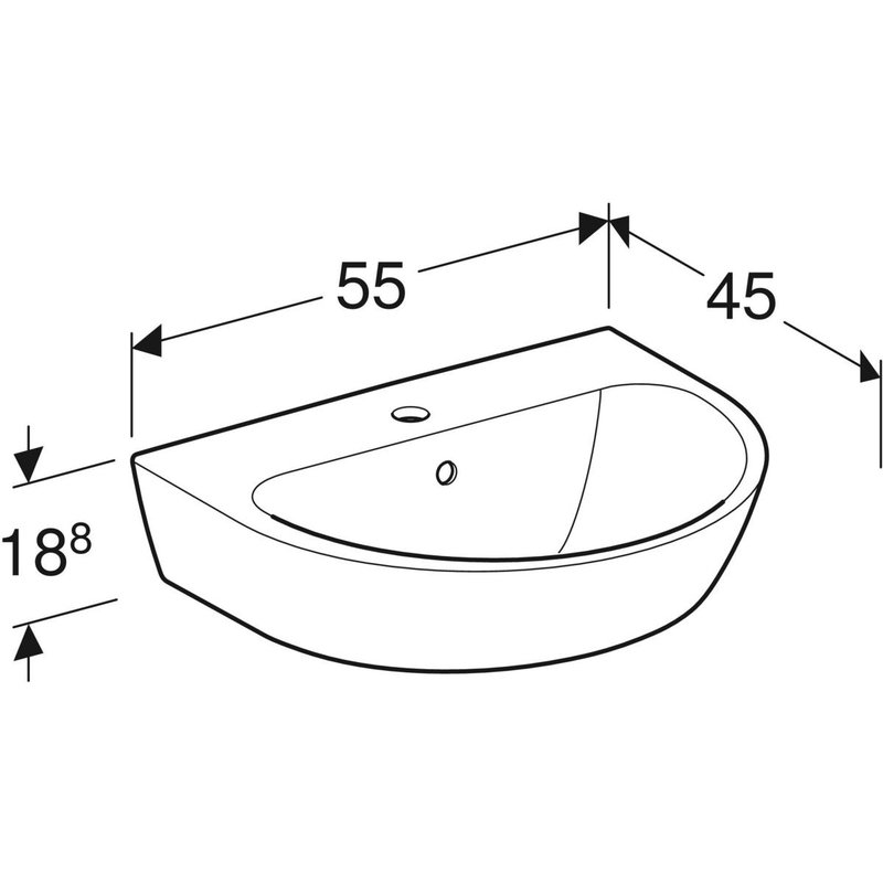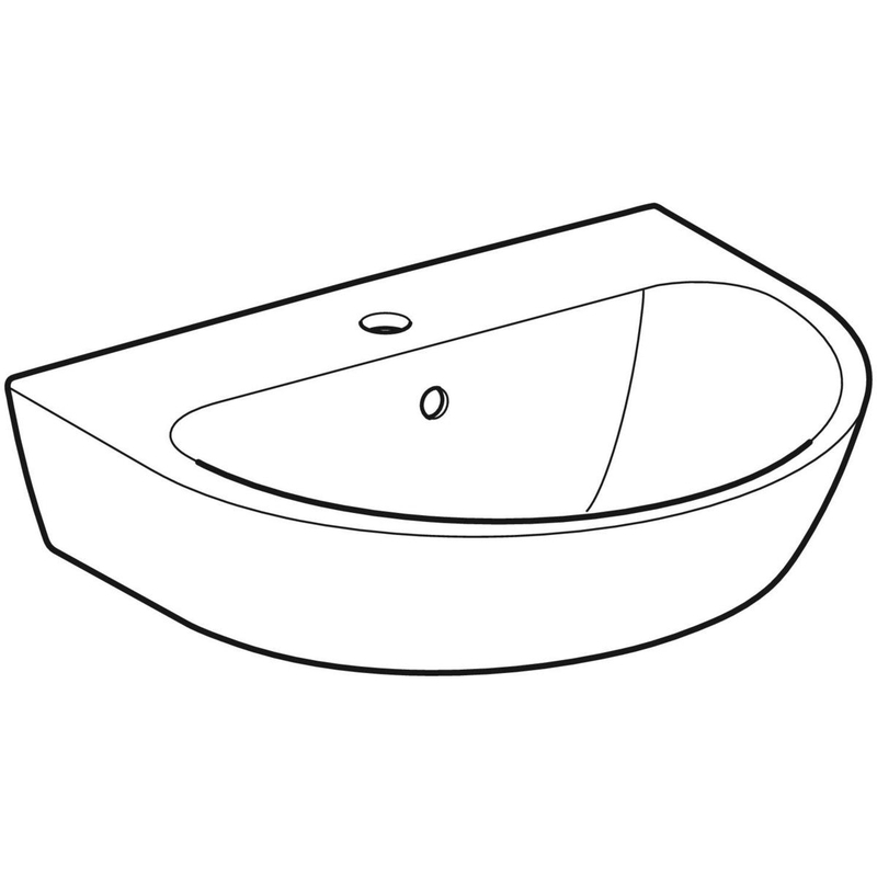 Geberit Renova -pesuallas: B = 55 cm, T = 45 cm, hanareikä = keskellä, ylivuoto = näkyvä, valkoinen / KeraTect.