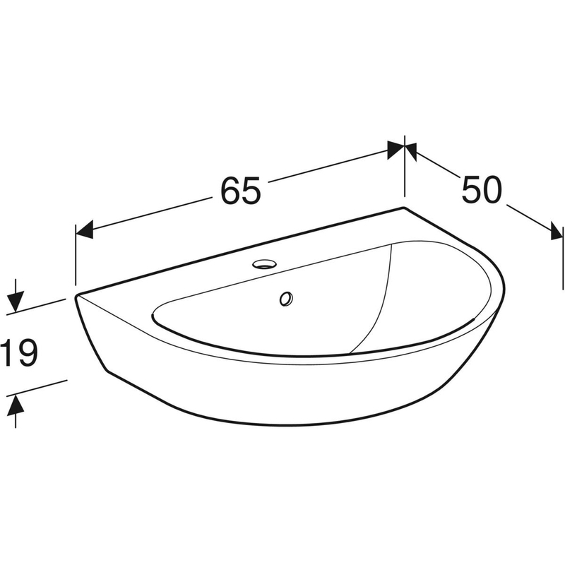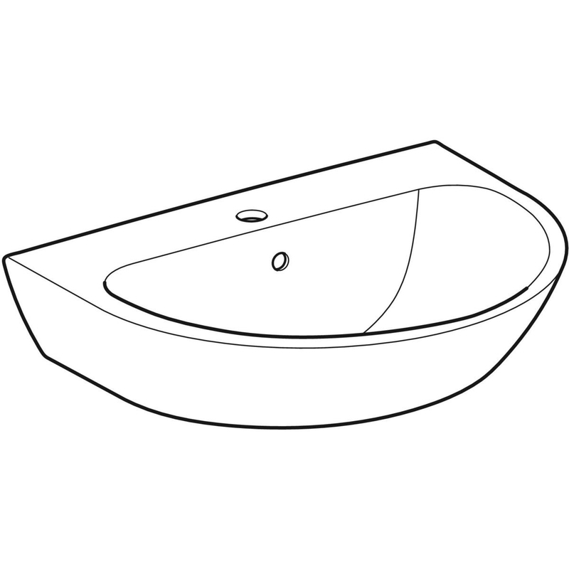 Geberit Renova -pesuallas: B = 65 cm, T = 50 cm, hanareikä = keskellä, ylivuoto = näkyvä, valkoinen / KeraTect.