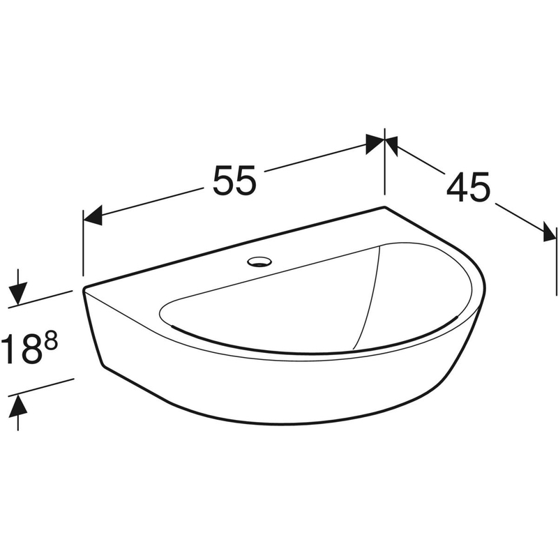 Geberit Renova -pesuallas: B = 55 cm, T = 45 cm, hanareikä = keskellä, ylivuoto = ei ole, valkoinen / KeraTect.