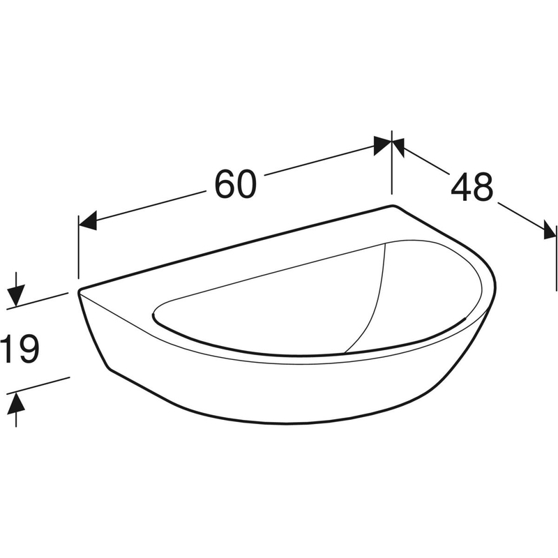 Geberit Renova -pesuallas: B = 60 cm, T = 48 cm, hanareikä = ei ole, ylivuoto = ei ole, valkoinen.