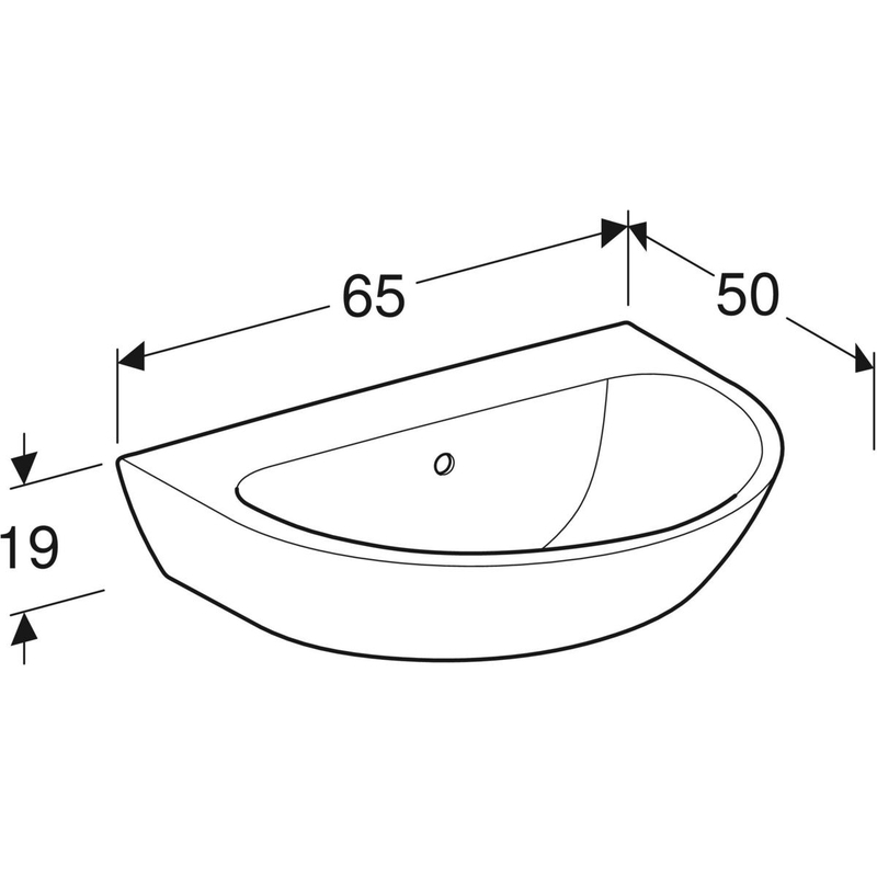 Geberit Renova -pesuallas: B = 65 cm, T = 50 cm, hanareikä = ei ole, ylivuoto = näkyvä, valkoinen / KeraTect.