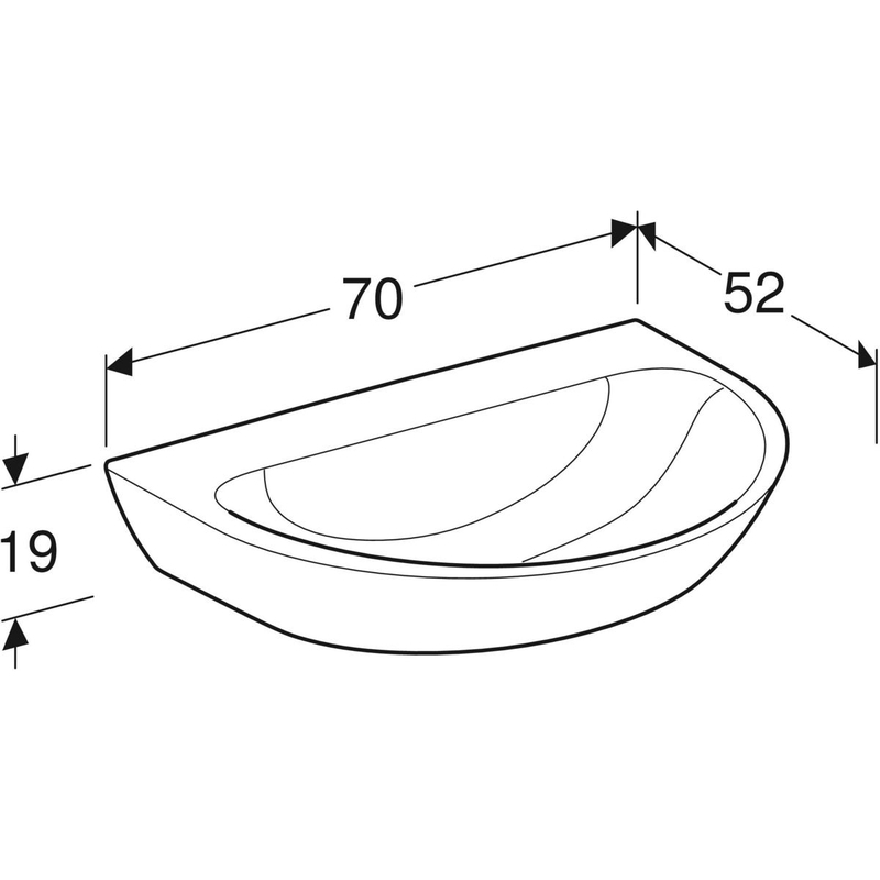 Geberit Renova -pesuallas: B = 70 cm, T = 52 cm, hanareikä = ei ole, ylivuoto = ei ole, valkoinen.
